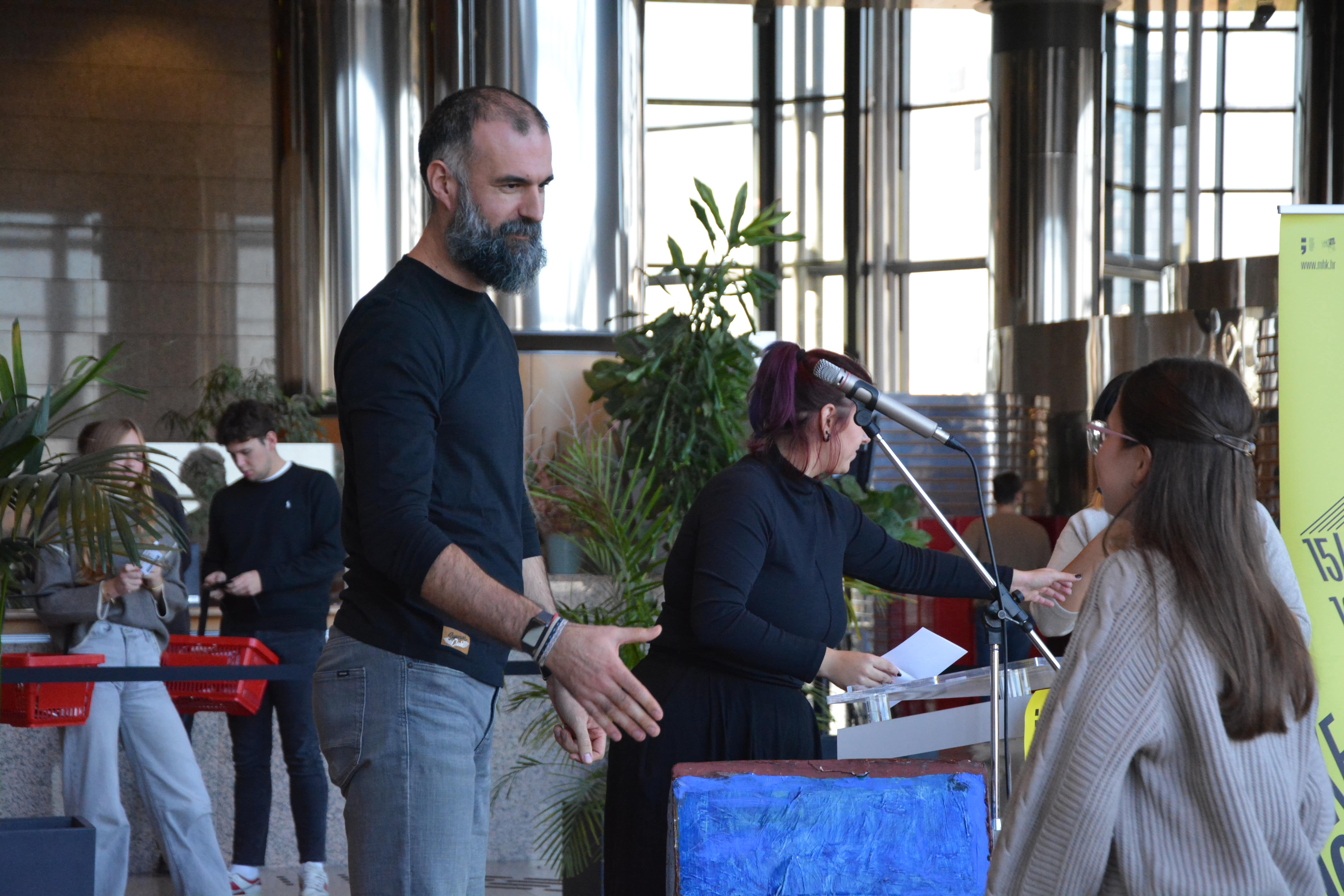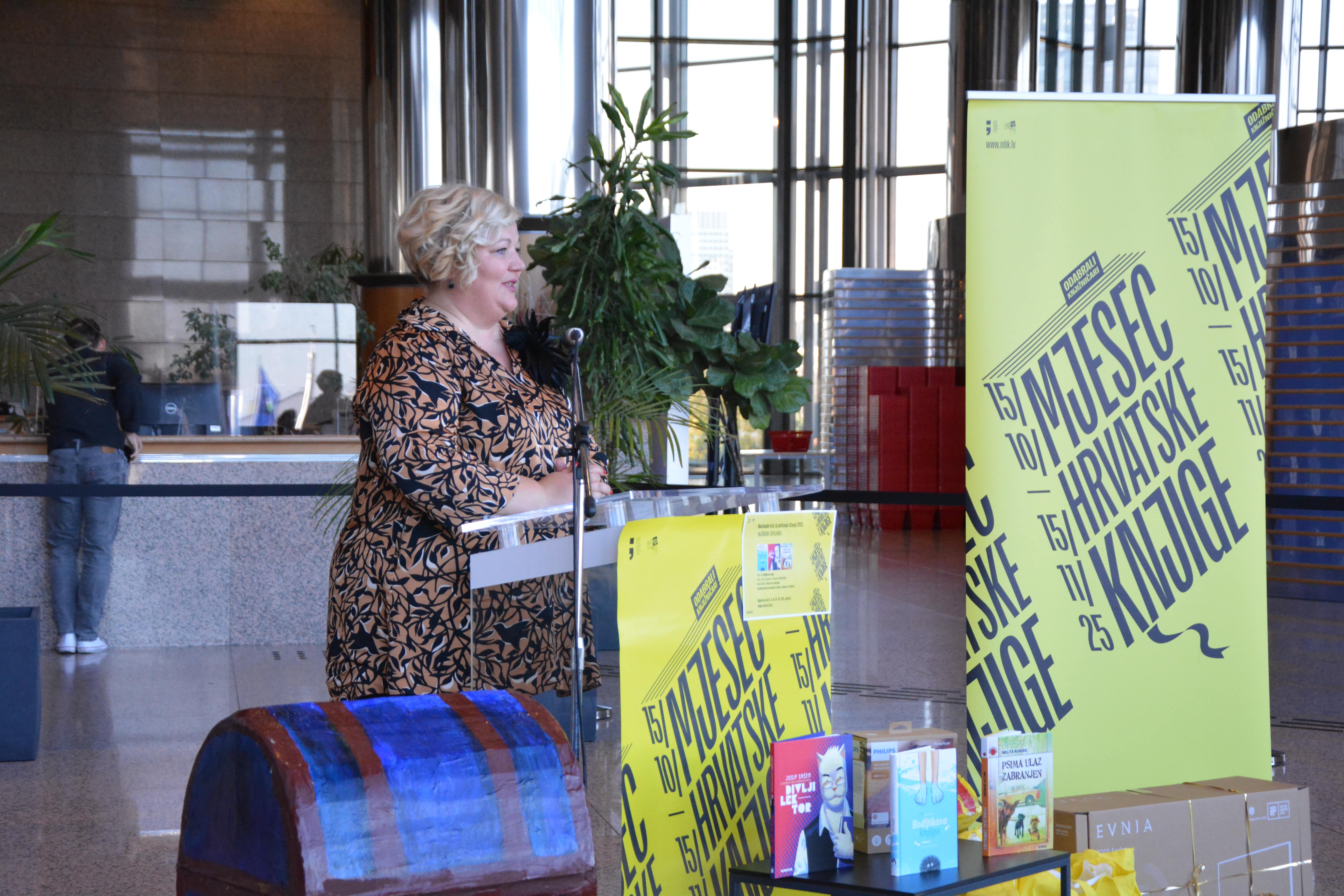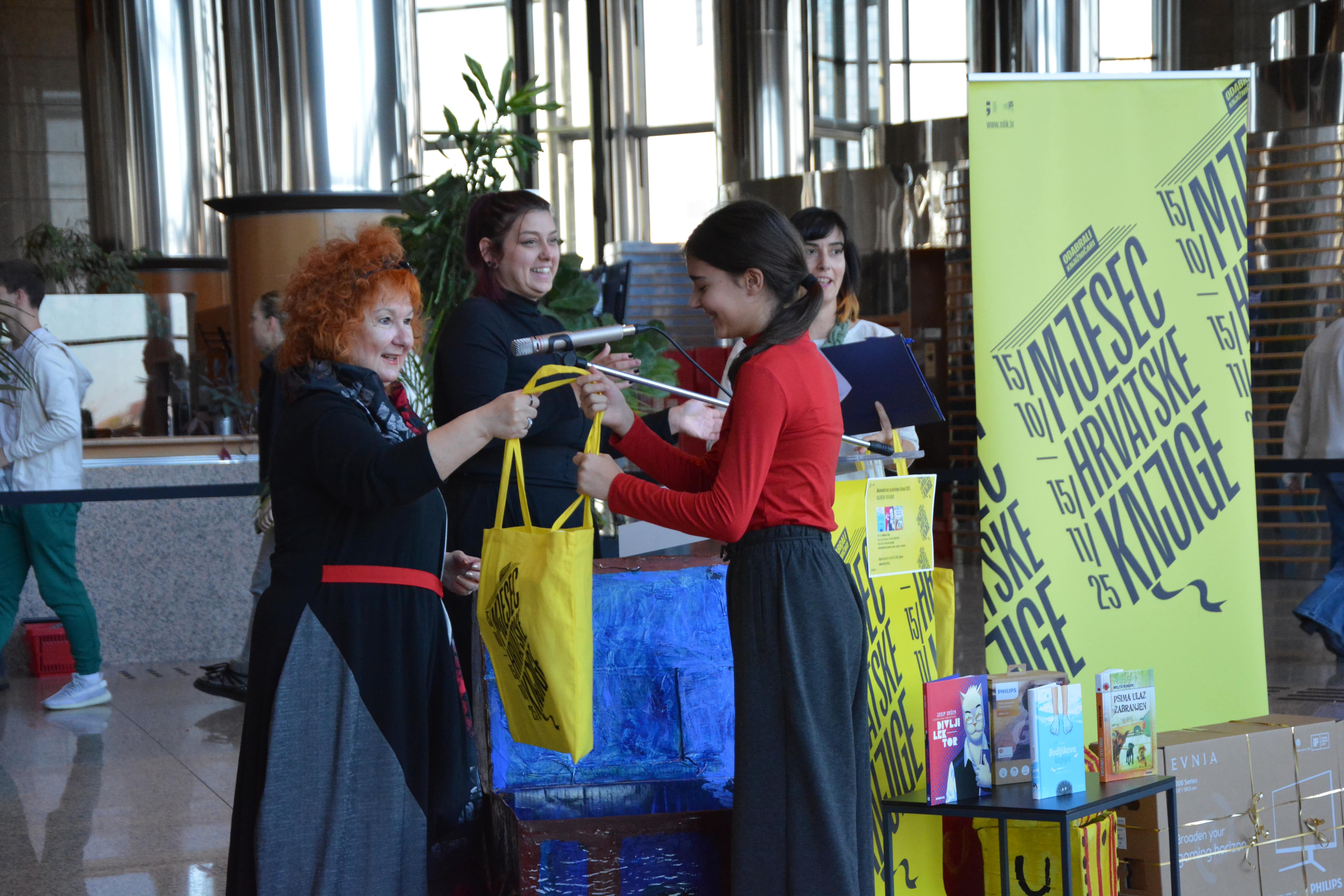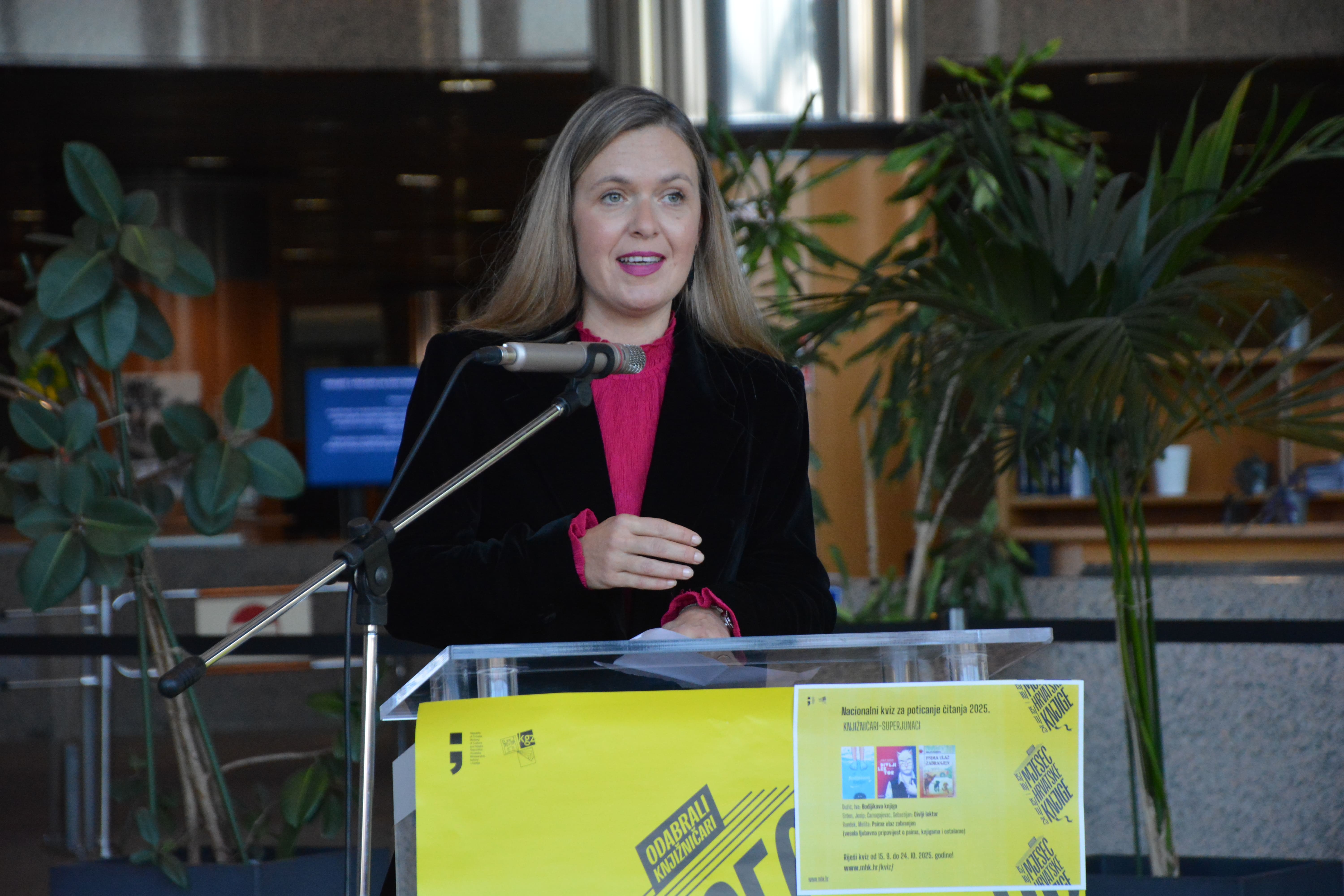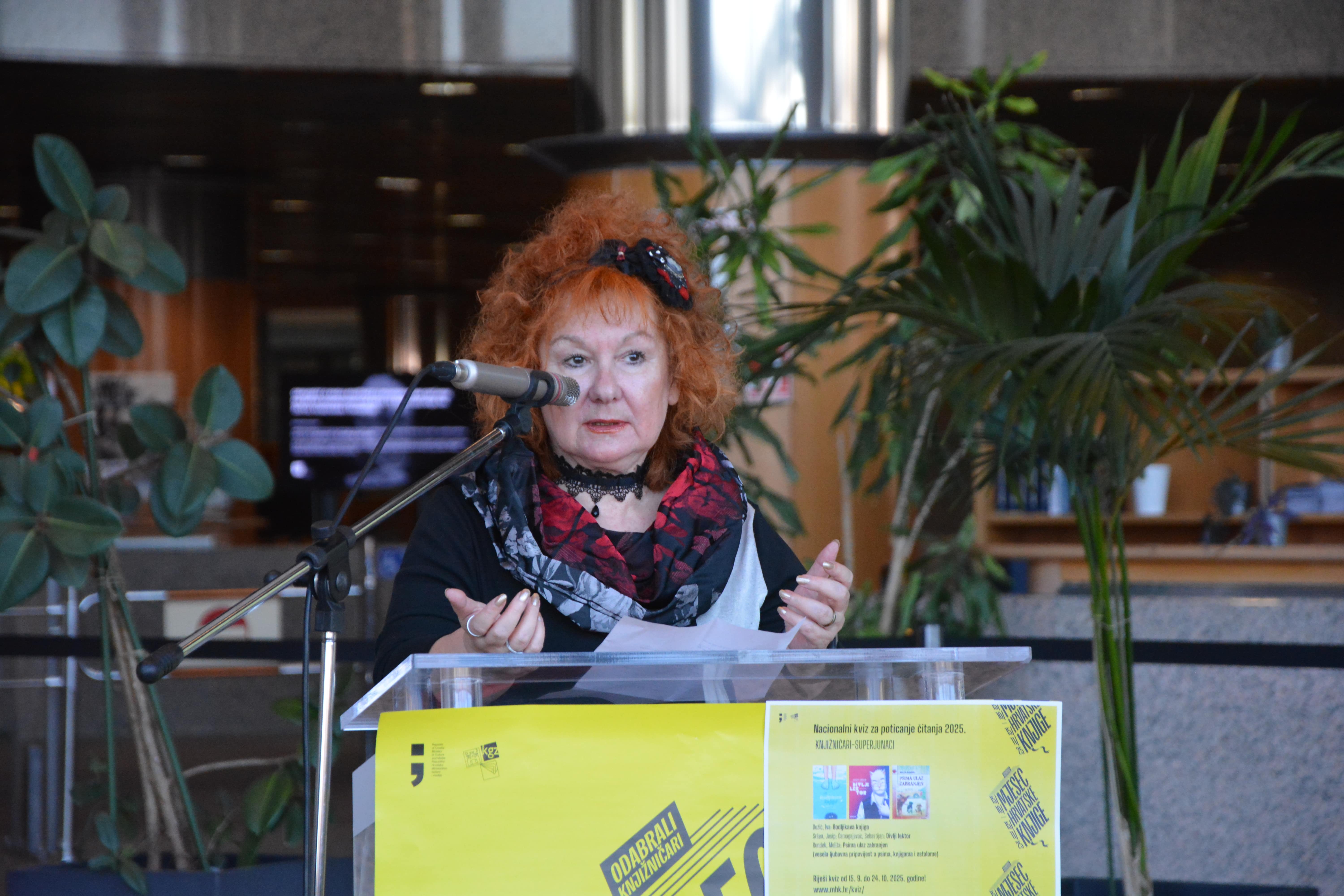 Brojne učenike i učenice u publici, kao i sve nazočne, pozdravila je voditeljica Odjela korisničkih službi Nacionalne i sveučilišne knjižnice u Zagrebu Dorja Mučnjak, u ime glavne ravnateljice Knjižnice, a zatim su se okupljenima obratile i ravnateljica Knjižnica grada Zagreba i predsjednica Programskog i organizacijskog odbora Mjeseca hrvatske knjige dr. sc. Sunčica Ostoić, izaslanica ministrice kulture i medija Republike Hrvatske Maja Zrnčić te informatorica na hrvatskom jeziku Gradske knjižnice Subotica Bernadica Ivanković. Program je vodila Isabella Mauro, voditeljica Hrvatskog centra za dječju knjigu i koordinatorica Nacionalnog kviza za poticanje čitanja.